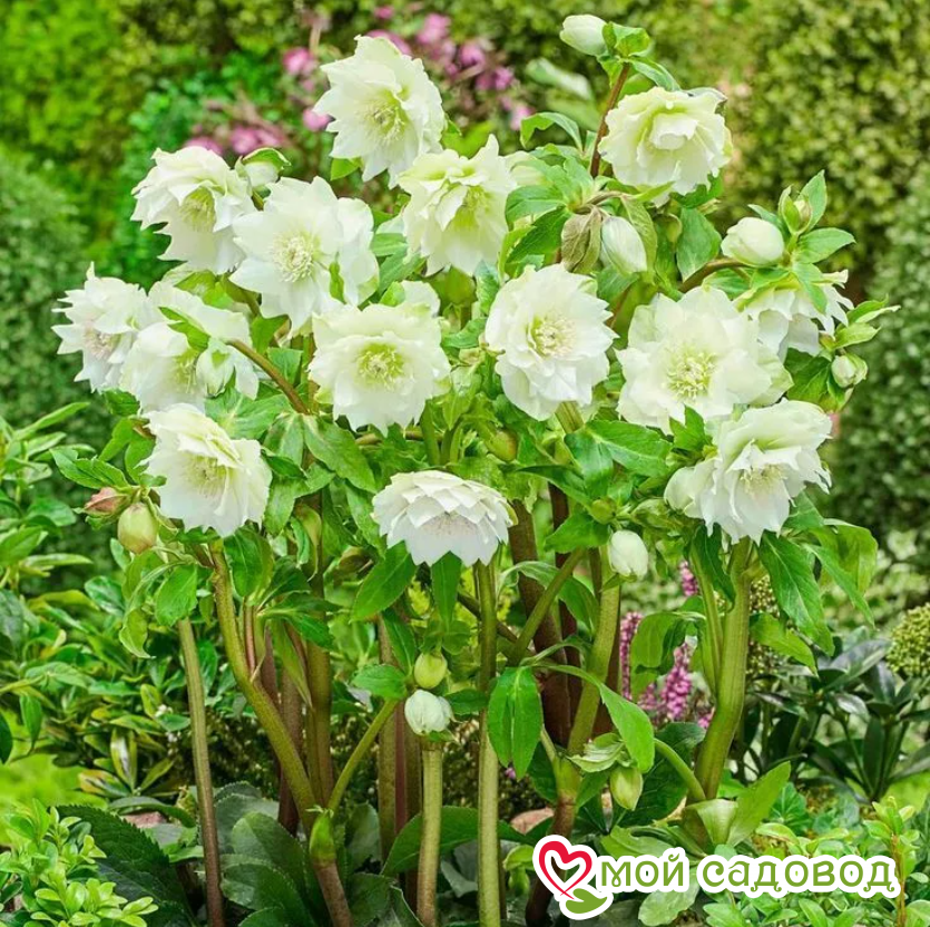 Это отличный выбор для тех, кто любит украшать свой сад популярными новинками. Сорт выведен сравнительно недавно. С тех пор он завоевал сердца многих цветоводов по всему миру. Купить недорого качественный посадочный материал можно в нашем интернет-магазине. Как выглядит растение? Цветки у морозника крупные, махровые, окрашенные в белый цвет. Лепестки остроконечные, с контрастным темно-бордовым узором. Тычинки кремовые. Стебли прочные и ровные. В высоту куст достигает 35 см. Цветение начинается в апреле и длится достаточно долго. Применение в ландшафтном дизайне Роскошные цветы и изящный вид многолетника незаменимы в создании садовых клумб, цветников и рабаток. Также сорт Дабл Эллен Уайт используют для оформления вазонов, дорожек и входной части дома. Растение отлично сочетается с другими «обитателями» участка. Советы по посадке и выращиванию Рассматриваемый сорт любит легкое затенение и почву с низким уровнем pH. Перед посадкой корни саженцев можно замочить в воде с добавлением стимулятора роста. Лунки выкапывают таких размеров, чтобы корневищу не было тесно. На дне делают дренаж из крупнозернистого песка. Процедура посадки стандартная. Уход включает своевременный полив, борьбу с сорняками и внесение подкормок. Положительные качества морозника Дабл Эллен Уайт К неоспоримым достоинствам сорта относятся: доступная цена; хорошая приживаемость; нетребовательность к уходу; высокая сопротивляемость болезням и вредителям; универсальность в применении. Если вы ищете возможность недорого купить саженцы морозника, интернет-магазин «Мой Садовод» — ваш идеальный вариант. Здесь вы найдете массу редких сортов по привлекательным ценам. Мы предлагаем удобную онлайн-покупку с доставкой до вашего дома.